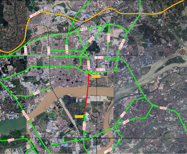 4.工程概况:新槎大桥总体呈南北走向,起于东莞中堂镇进园大道,终点接顺广州增城区新塘镇东华大道,与新塘大道平交,长约2.33km,设跨江大桥一座,桥上设慢行系统。项目采用一级公路兼城市道路标准,设计车速主线60km/h,辅道40km/h,主线双向6车道,辅道双向4车道。建设内容主要包括道路、桥梁工程、给排水工程、交通工程、照明工程、电力通信及景观绿化工程等。